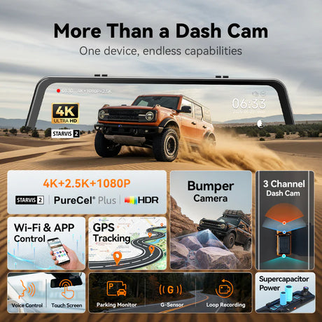 WOLFBOX G850 4K Mirror Dash Cam, Rear View Mirror Camera